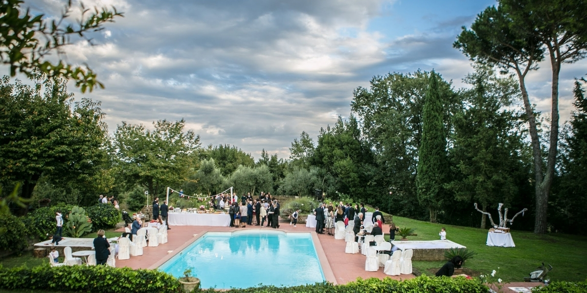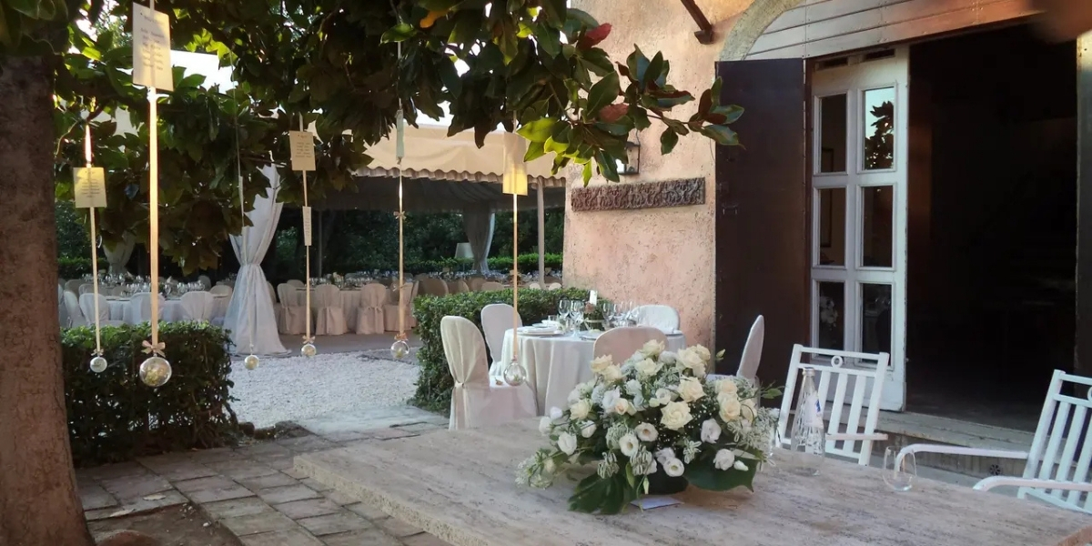 Gli spazi interni comprendono saloni affrescati e ambienti arredati con mobili d’epoca, ideali per ricevimenti raffinati fino a 140 persone. All’esterno, il grande parco con alberi secolari, la piscina, il roseto e la piazza rotonda lastricata offrono scenari perfetti per aperitivi, musica, balli e intrattenimento. Il tutto corredato da ampio parcheggio per gli ospiti e possibilità di affidarsi ad una wedding planner dedicata.
