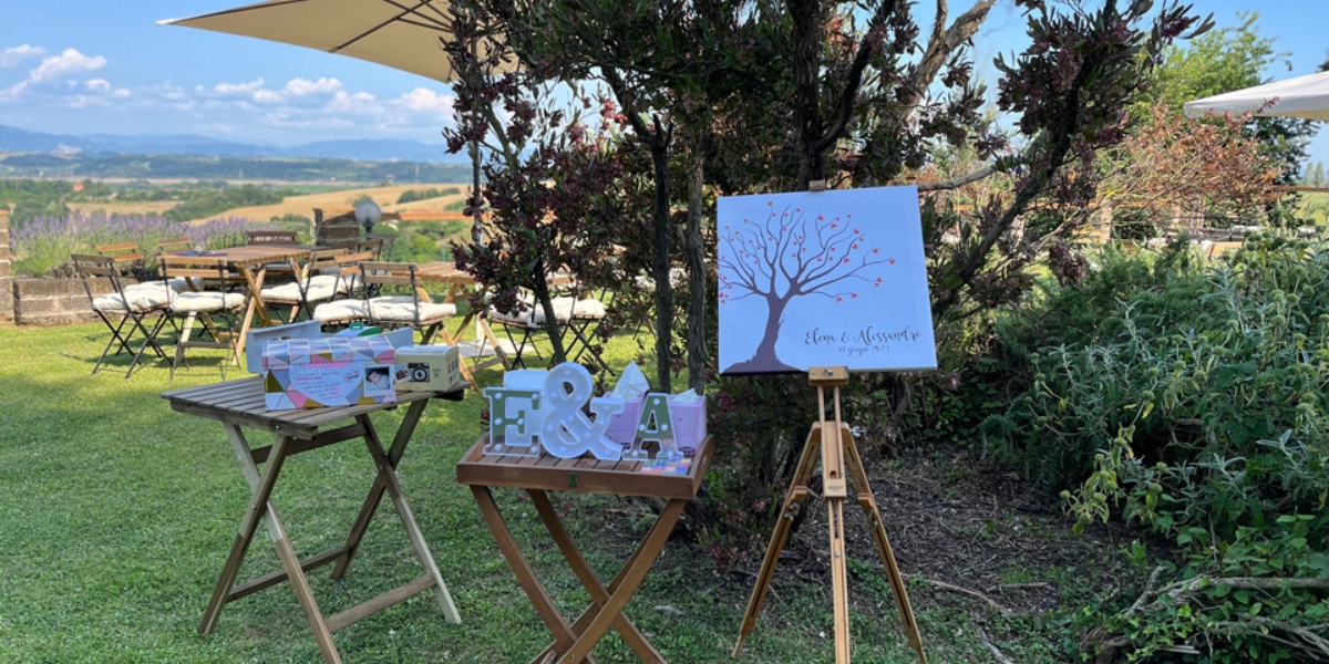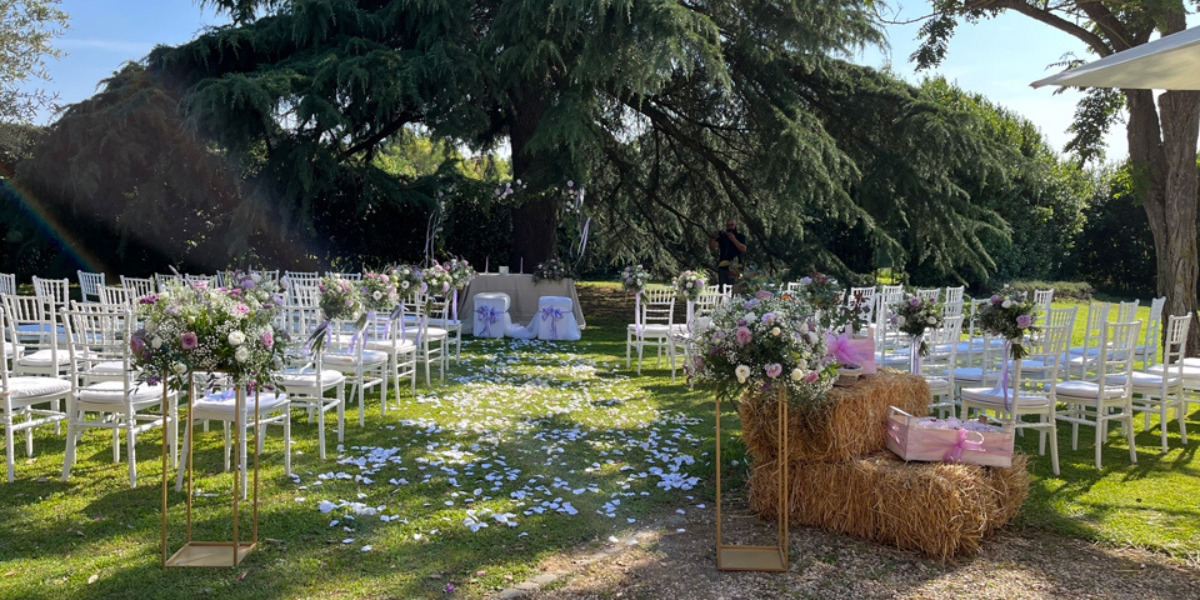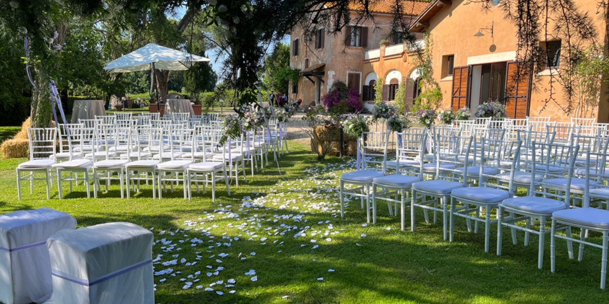 - Aree esterne: parco secolare per welcome, aperitivi al tramonto, dessert bar e taglio torta all’aria aperta.